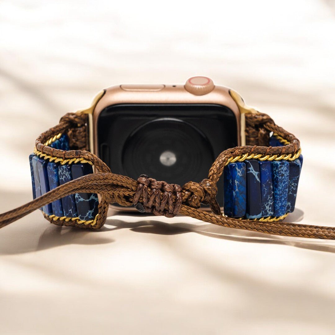 The Azure Lapis Lazuli Apple Watch Strap features Lapis Lazuli, a powerful stone of wisdom, intuition, and truth, known for opening the third eye chakra to enhance inner clarity. This crystal’s healing properties support a deeper connection to self, helping you embrace your authentic power.