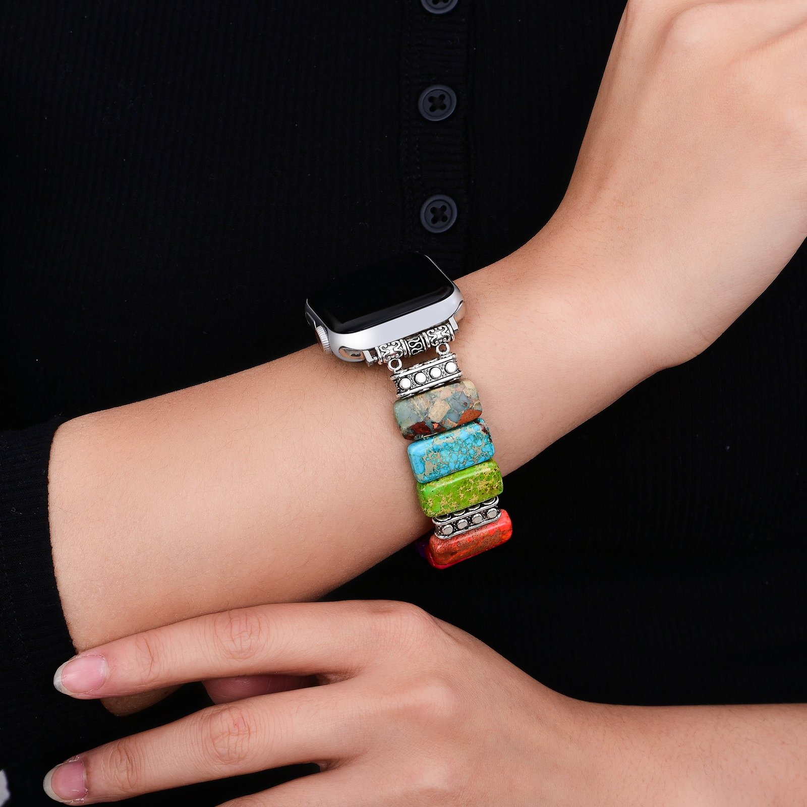 The Chic Chakra Stretch Apple Watch Strap is a stylish and vibrant accessory that aligns your energy with the power of the seven chakras. Handcrafted with colorful natural stones, this strap helps balance your mind, body, and spirit while elevating your look.