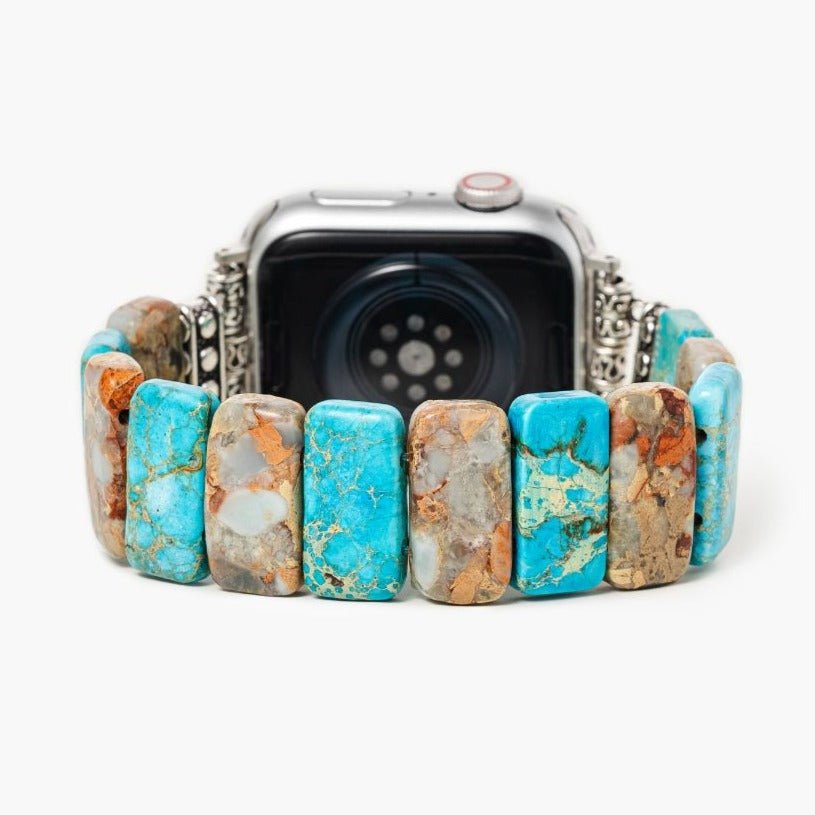 Add a touch of seaside elegance to your wrist with the Coastal Turquoise Stretch Apple Watch Strap. This exquisite accessory features beautiful turquoise beads that evoke the tranquil beauty of coastal waters.